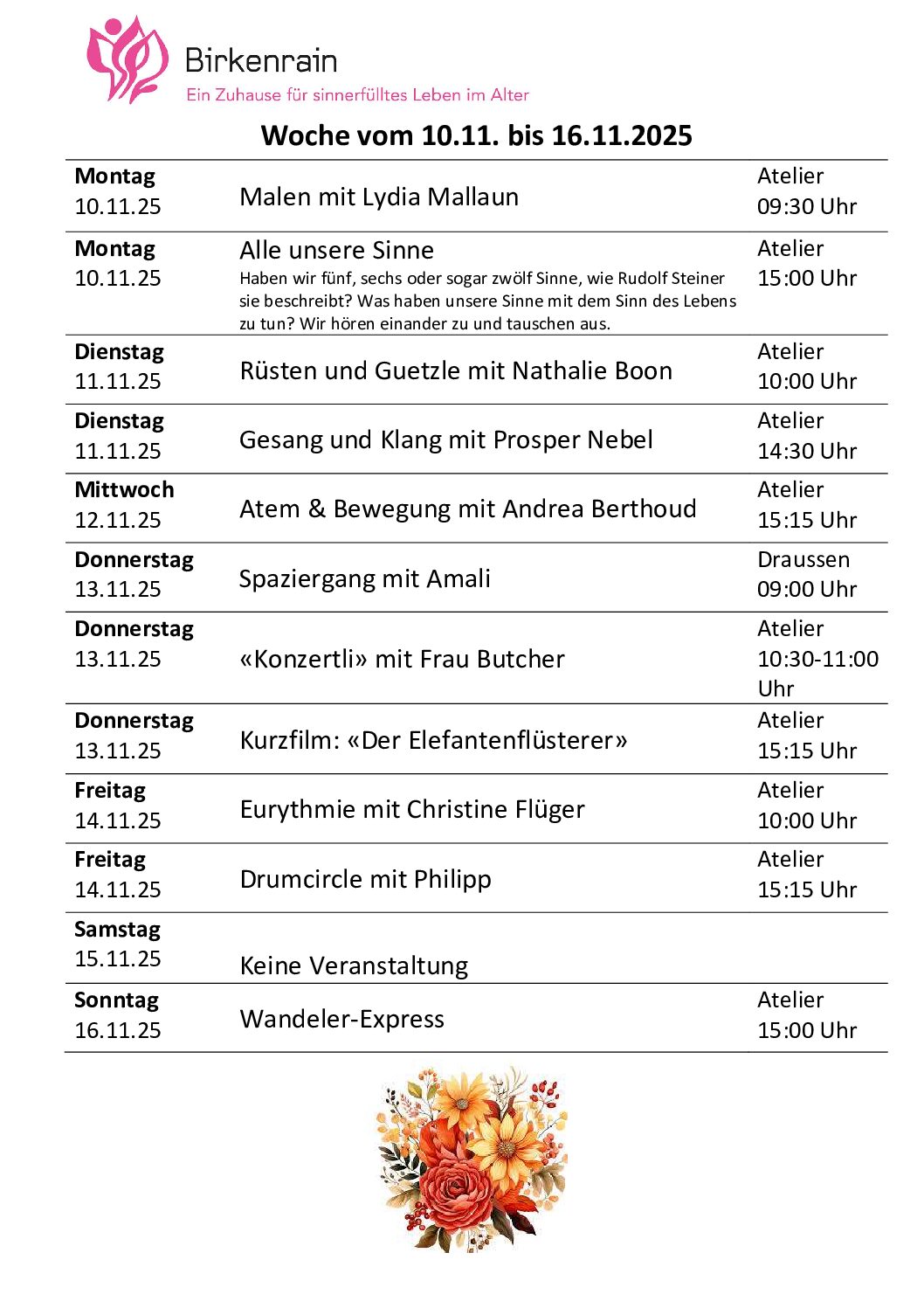 Unser aktuelles Wochenprogramm bietet abwechslungsreiche Aktivitäten für Körper, Geist und Seele.